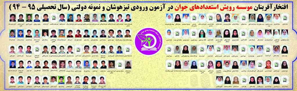 افتخار آفرینان موسسه رویش استعدادهای جوان (قیاس) در آزمون های ورودی مدارس تیزهوشان و نمونه دولتی سال تحصیلی 95-94