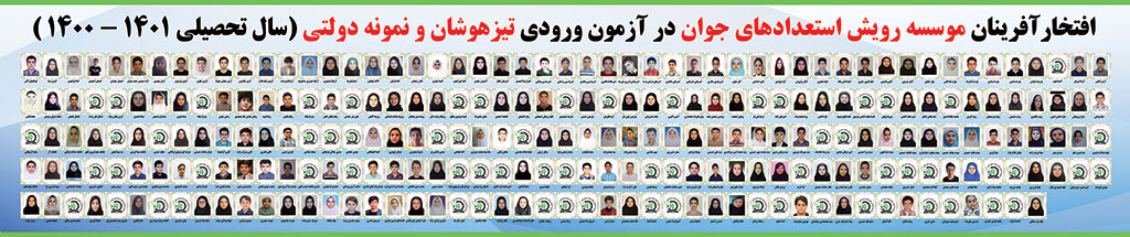 افتخار آفرینان موسسه رویش استعدادهای جوان (قیاس) در آزمون های ورودی مدارس تیزهوشان و نمونه دولتی سال تحصیلی 1401-1400