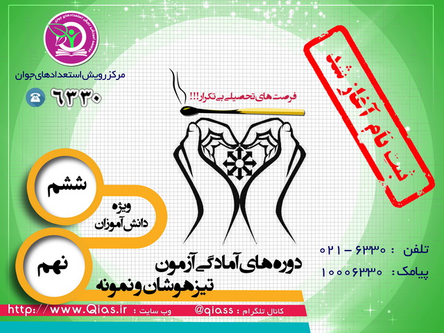 متقاضیان جدید دوره های آمادگی آزمون ورودی مدارس تیزهوشان می توانند با مراجعه به لینک زیر جهت دوره های ترم پاییز (مهر ۱۴۰۱) اقدام به بررسی و ثبت نام نمایند.